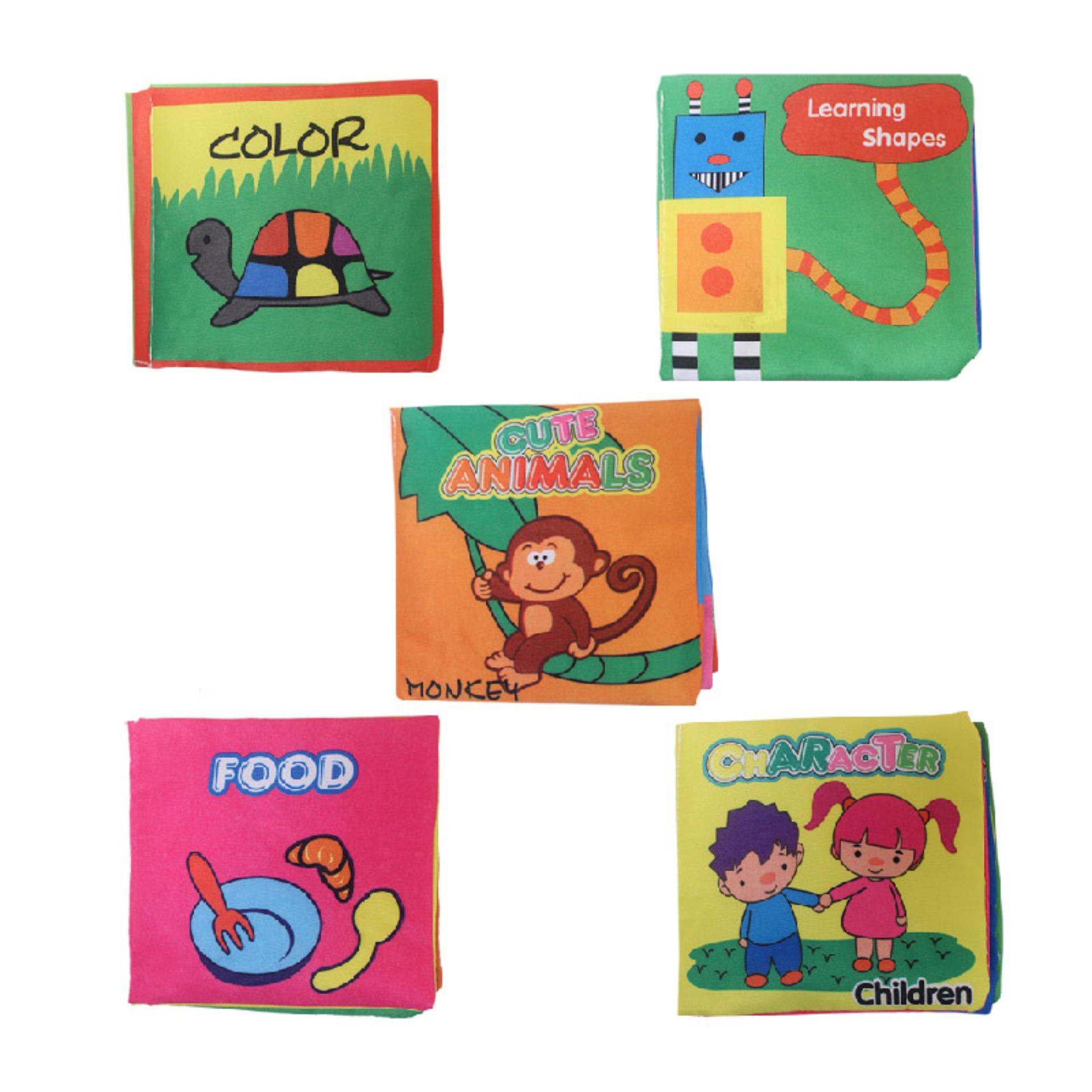 Eelic Ayi Bu01 1 Set 5 Pcs Animal Color Shape Food Character Baby Book Mainan Buku Bayi Kain